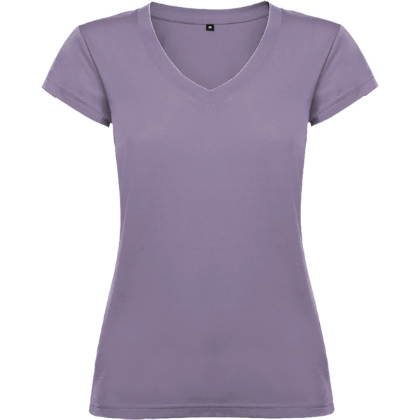 Camiseta de mujer con manga corta, escote en cuello de pico y acabados en ribete acanalado.